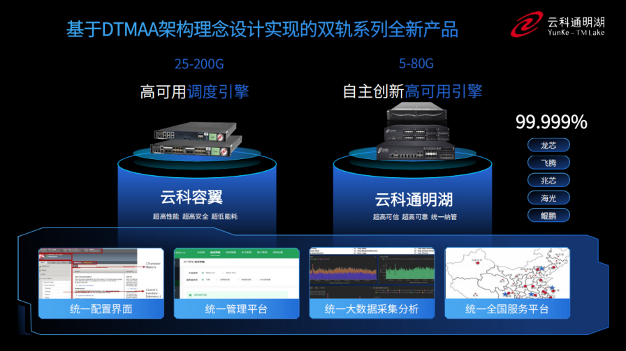 同时,为了更好的适配双轨超高可用架构,bbin宝盈集团官网推出了容翼系列和云科通明湖信创系列两大应用交付控制器产品。